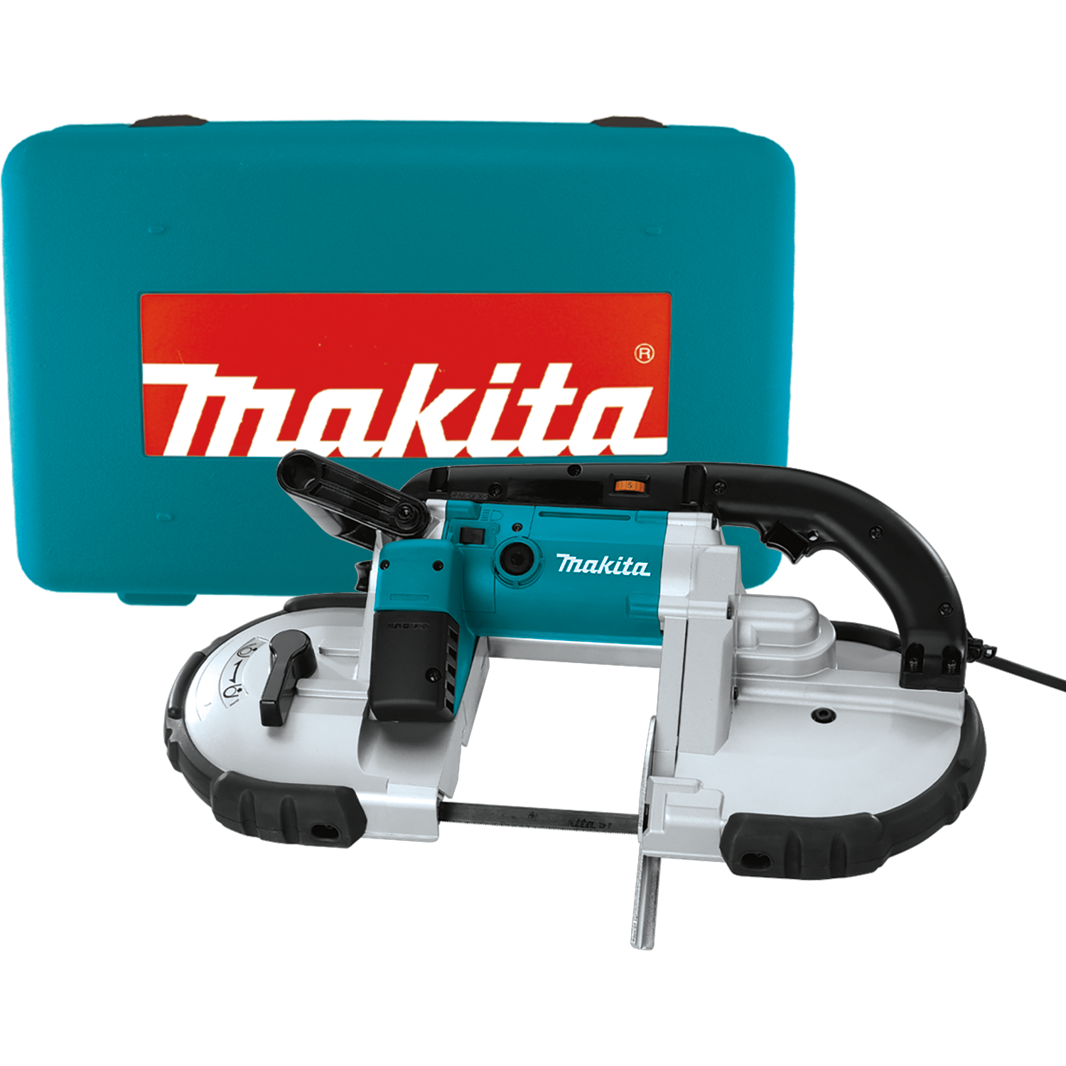 MAKITA 2107F CORDED PORTABLE BAND SAW is a durable and reliable tool for metal cutting. Its aluminum frame and motor housing make it sturdy for heavy-duty use. With a built-in fluorescent job light and independent switches, you can easily work in poorly lit areas. The preset dial allows for customizable speed adjustment for different materials, ensuring precise and efficient cutting.