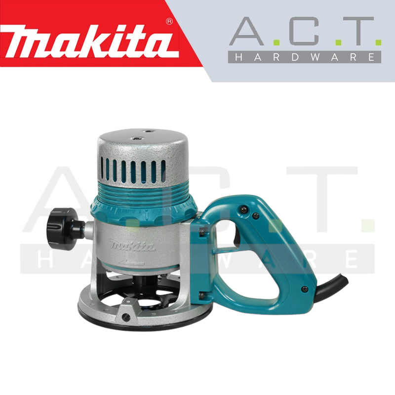 The 3601B CORDED ROUTER offers a well-balanced design with a powerful 930 W motor delivering 23,000 RPM, allowing for smooth and continuous operation. The non-marring base provides an excellent finish, while the D-handle design and locking trigger switch make for easy depth adjustment.