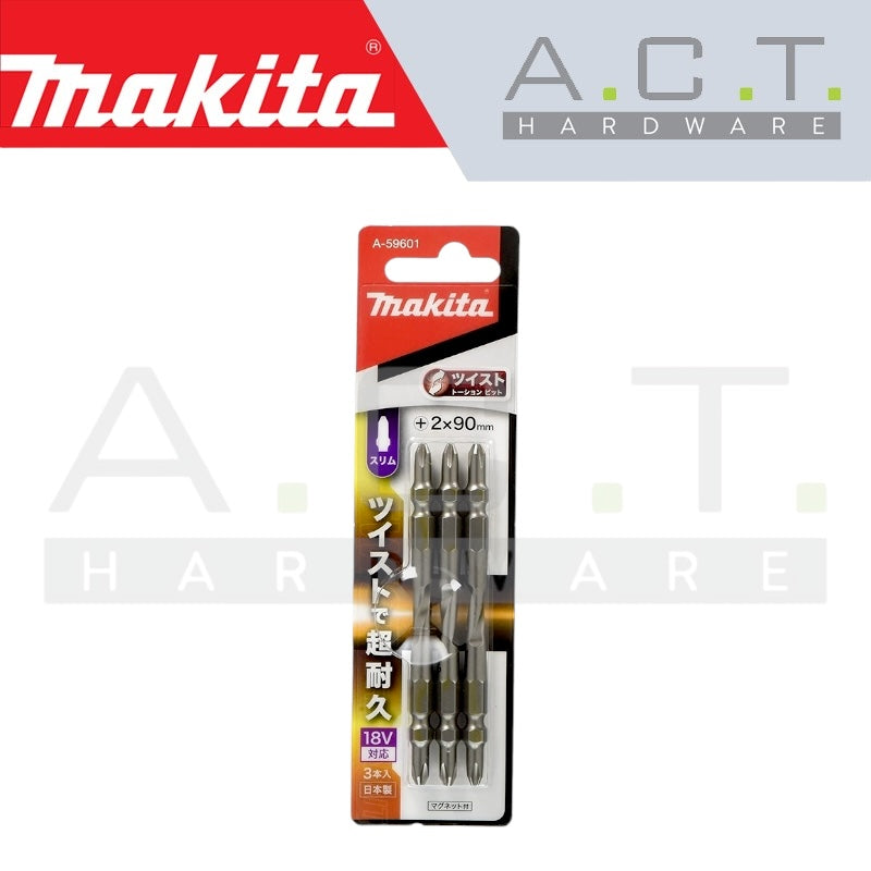 MAKITA 3PC MAGNETIC DOUBLE ENDED TWIST TORSION SCREW BIT, PH2 (SLIM), E-FORM, 90MM, A-59601