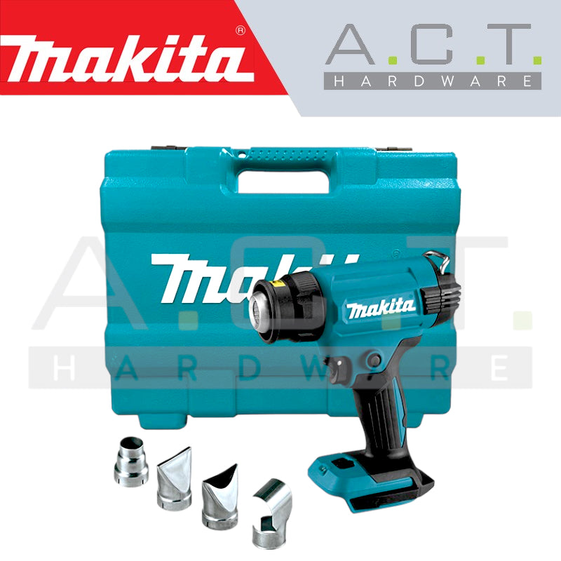 Introducing the MAKITA DHG181ZK Cordless Heat Gun - an essential tool for every passionate worker. With a maximum air temperature of 550 degrees Celsius and a quick release mechanism for easy nozzle replacement, this heat gun is perfect for a wide range of cordless works. Plus, it offers a maximum air flow of 200 L/min and up to 30 minutes of continuous run time with an 18V LXT 6.0Ah Battery BL1860B (battery not included). Take your work to the next level with this powerful and versatile heat gun.