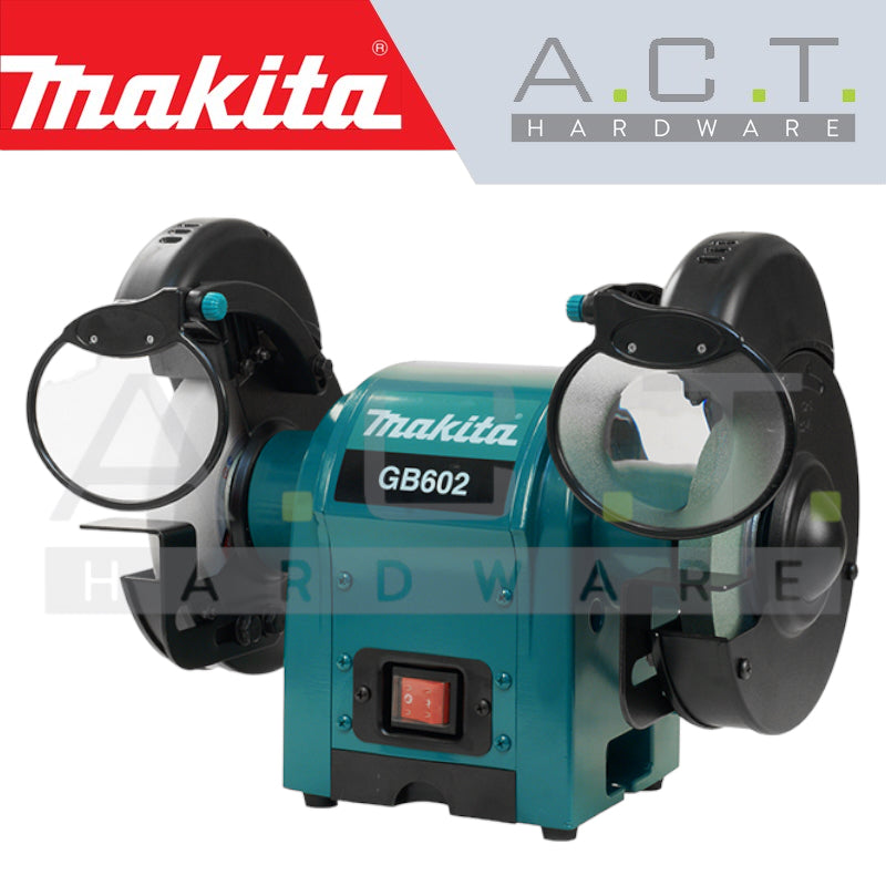 The MAKITA GB602 CORDED BENCH GRINDER is a light and stable performer that ensures steady tool maintenance. It features a special sharpening wheel and holder, built-in task lights and a magnifying eye-shield for close work. With a split capacitor motor, this grinder offers higher efficiency and reduced noise and vibration. Plus, work rests provide added comfort during use.