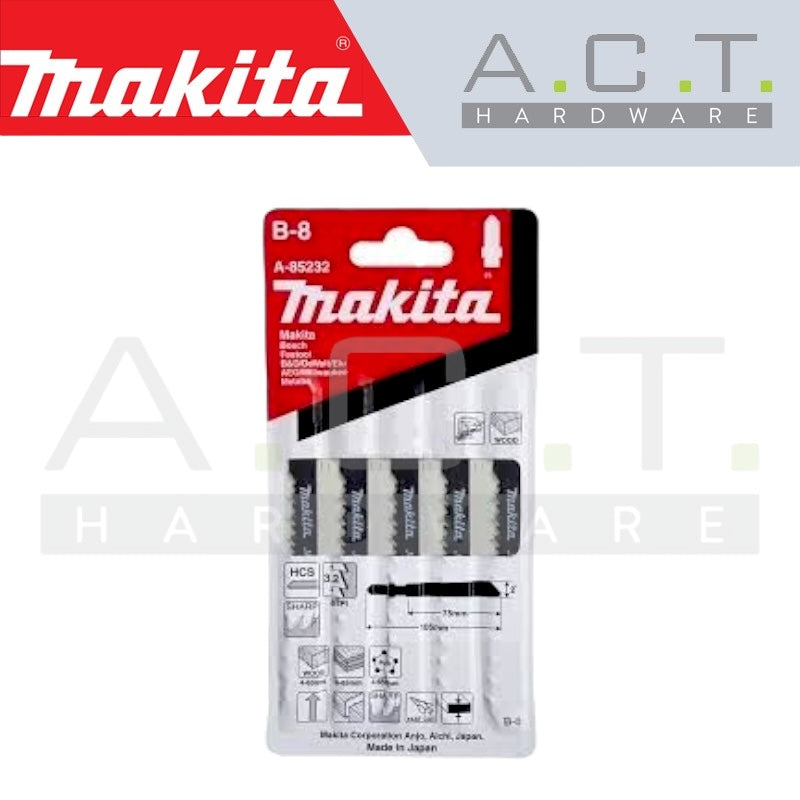 MAKITA JIG SAW BLADE, BAYONET TYPE, (FAST/WOOD/PLASTIC/HOOK ANGLE), NO: B-8 (A-85232)