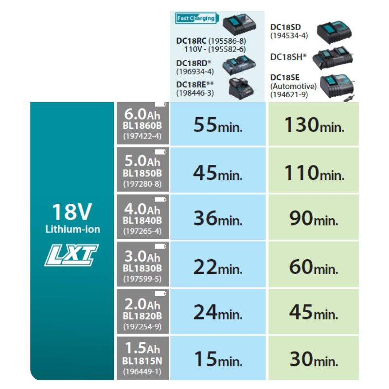 | BL1860B (6.0AH) | 55 min |